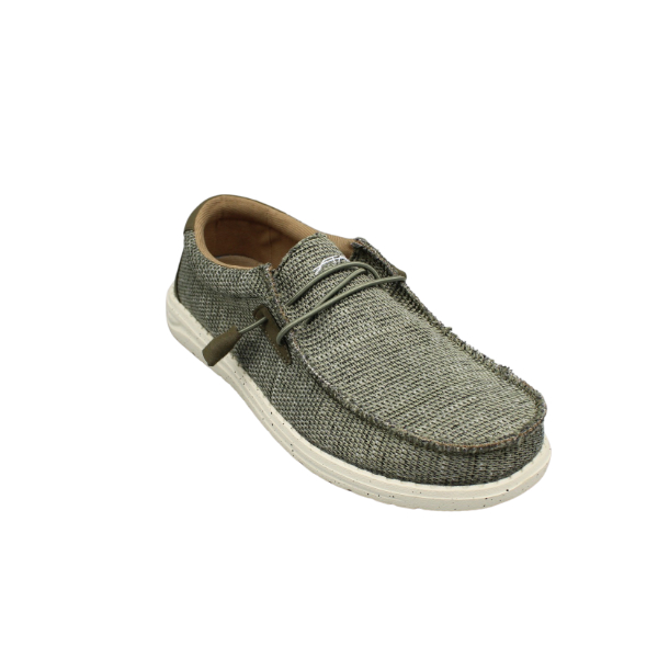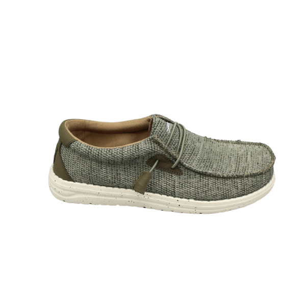 Zapato de hombre estilo casual. Fabricado en tejido jaspeado color kaki con cordón elástico.