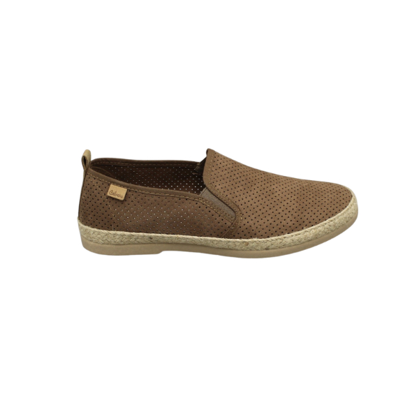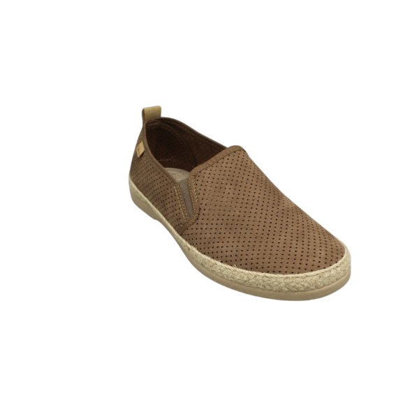 Alpargata de hombre fabricada en tejido suede picados color taupe. Suela de goma con vira de yute.