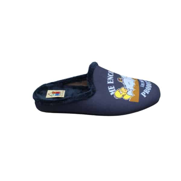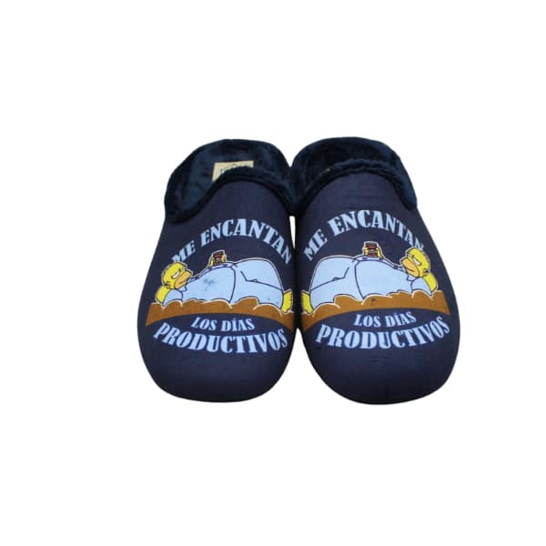 Chinela de casa de hombre con estampado Hommer, me encantan los días productivos. Fabricado en tejido color azul. Plantilla extraíble y suela de goma para una mayor comodidad.