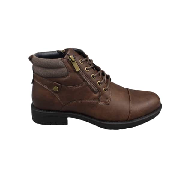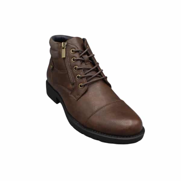 Bota de hombre de estilo casual con cordones y cremallera lateral. Fabricado en napa sintética color marrón.