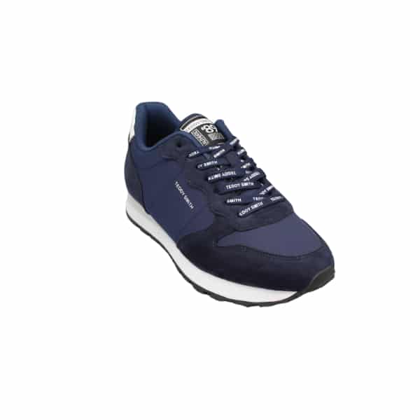 Zapato de hombre estilo casual TEDDY SMITH con cordones. Fabricado en serraje sintético combinado con nylon color azul. Suela combi con pieza blanca en el talón.