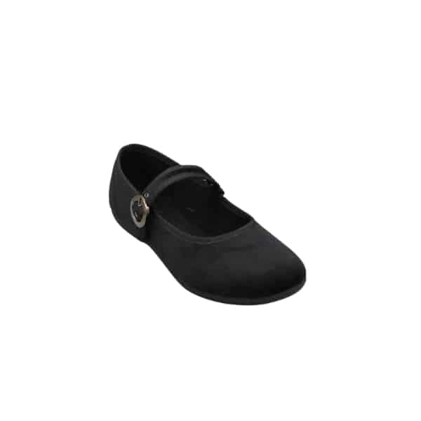 Zapato de mujer estilo mercedes con cierre de hebilla.. Fabricado en terciopelo color negro y plantilla de piel. Suela de goma para mayor comodidad.