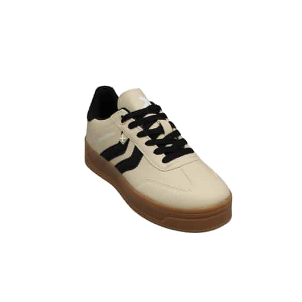 Zapato deportivo de mujer XTI con cordones. Fabricada en napa sintética color beige. Suela gruesa de goma antideslizante. Con plantilla extraíble.