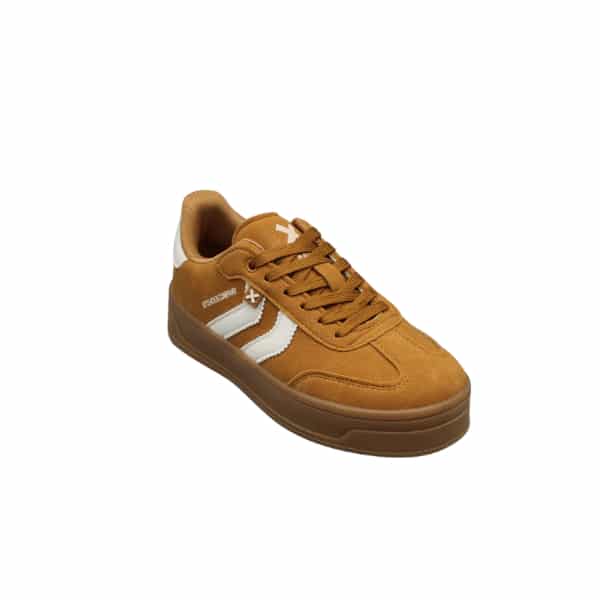 Zapato deportivo de mujer XTI con cordones. Fabricada en suede color camel. Suela gruesa de goma antideslizante. Con plantilla extraíble.
