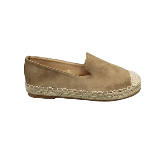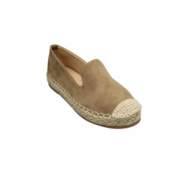 Alpargata de mujer estilo copete. Fabricada en tejido color taupe con suela de yute.